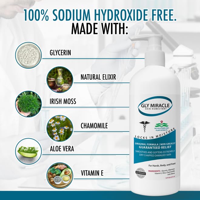 - PROFESSIONAL GRADE: With over 30 years of trust and excellence, GLY MIRACLE continues to deliver unparalleled hydration. Our time-tested formula, enriched with the natural elixir of the Aloe plant, Chamomile, Irish Moss, and Glycerin, ensures your skin receives the care it deserves. Made in the USA and cruelty-free, it's a testament to our commitment to quality and compassion.