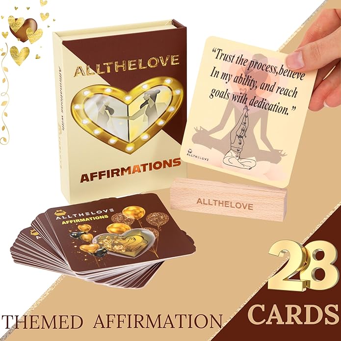 - AFFIRMATION CARDS FOR MOTIVATION: Elevate emotional well-being with premium affirmation cards housed in a magnetic box with a wooden stand. Focus on self-love, financial growth, and daily inspiration to create a positive, empowered mindset.