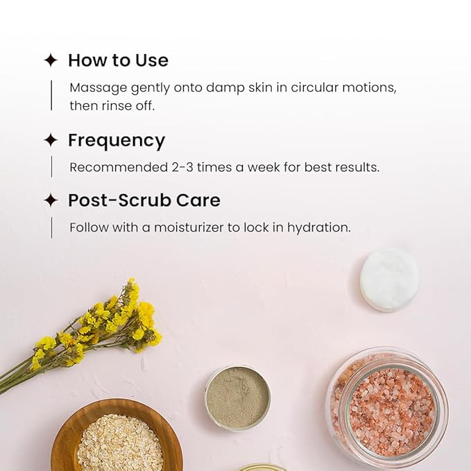 - Natural Exfoliation with Walnut Shell & Sea Salt: Experience gentle, effective exfoliation with finely ground walnut shell and mineral-rich salt that help remove dead skin cells and smoothen rough areas