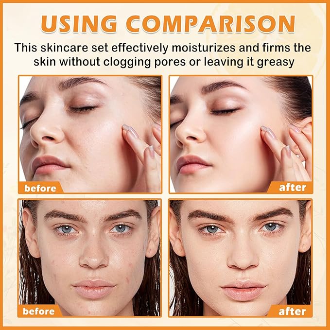 - 【Daily Skincare Kit】The face skin care set is refreshing and hydrating, effectively moisturizing and tightening skin, does not clog pores, is not greasy, absorbs quickly, improves skin, and makes your skin look younger.