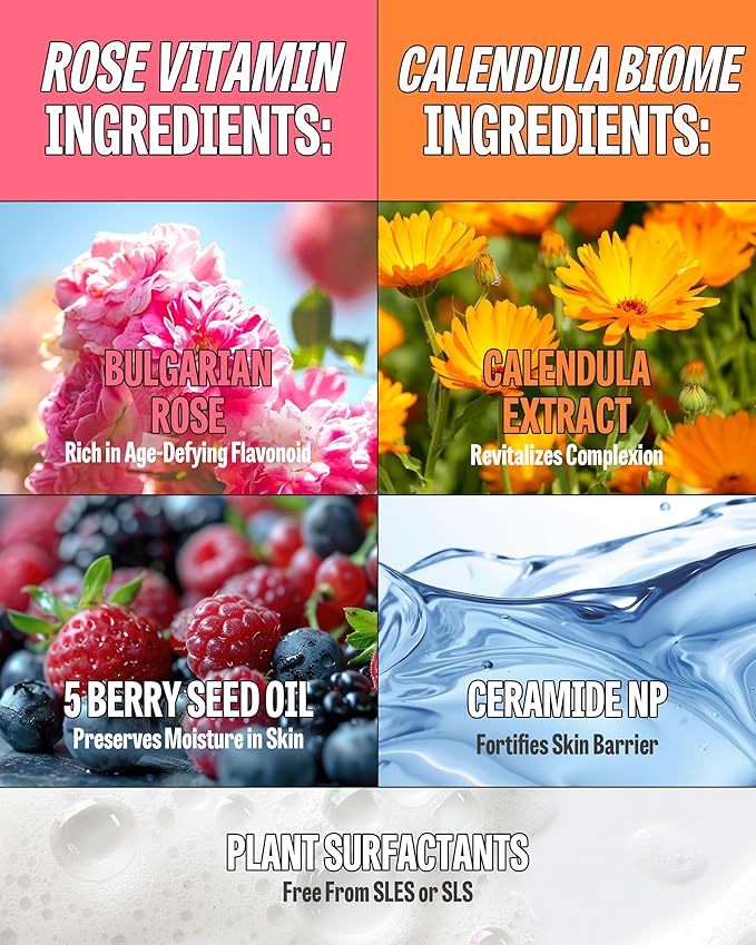 [K-Beauty] Rose Vitamin + Calendula Biome Oil Foam Gift Set | Daily Face Wash Oil Based Cleanser to Foam | Korean Skin Care Oil Cleanser for Dry Sensitive Skin | Face Cleanser Bundle
