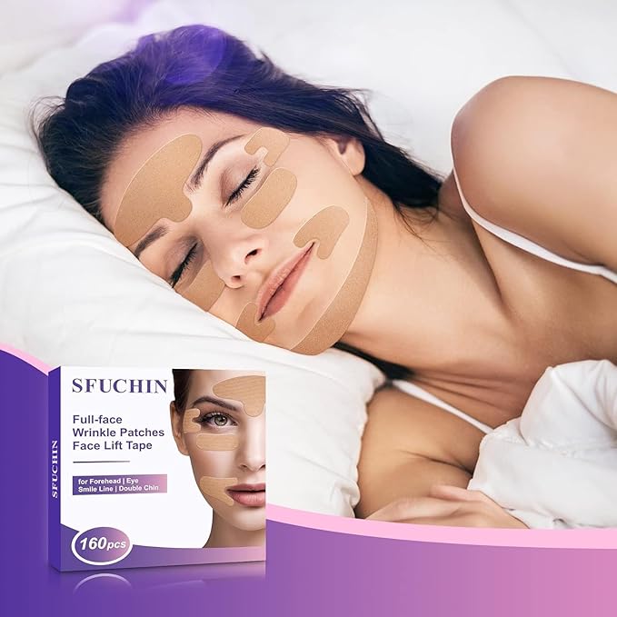 Wrinkle Patches, 160 PCS Face Tape, Pre Cut Kinesiology Full Face Tape for Wrinkles, V Line, Forehead, 11's, Frown, Eye, Lip - Neck Wrinkle Pads, Overnight Used High Elastic Facial Tape