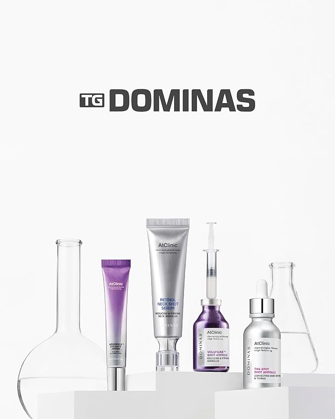 - DOMINAS ATCLINIC TXA-SPOT SHOT AMPOULE (30ml/1fl oz) – This powerful ampoule helps visibly reduce pigmentation and uneven patches, enhancing skin clarity and smoothness within just two weeks. Suitable for all skin types.