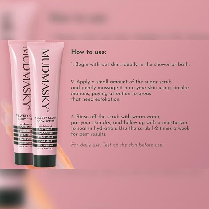 Mudmasky Velvety Glow Body Scrub 6.0 OZ. XXL-size - AS SEEN IN YOUR IPSY GLAM BAG - Exfoliating Bamboo Scrub. Made in France. No harsh chemicals. For Soft, Radiant Skin.