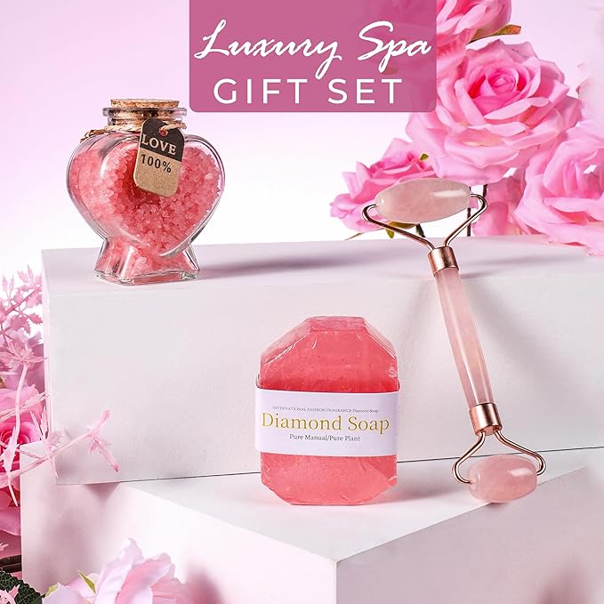 - ✨ THOUGHTFUL PAMPERING: Our spa gift basket includes a derma roller to ensure that pampering isn’t just skin deep, it’s a full body experience. Plus, the note card adds a personal touch, perfect for gifting. Our spa gift set can be used as sympathy gifts for women, get well soon gifts for women, self care gift for women, and even a birthday gift baskets for women.