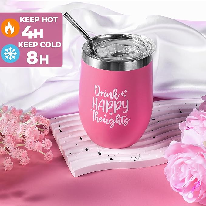 - 💖 SIP & SAVOR MOMENTS OFC CALM: This women’s gift set includes a 12oz insulated tumbler that keeps your drink at the perfect temperature, whether you’re winding down with tea or celebrating with wine, or even energizing with a coffee. The "Drink Happy Thought" print on tumblr will make sure she knows how much you care and acts as a great relaxation gifts for women.