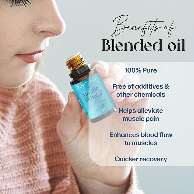 White Naturals Muscle Relief Essential Oil Blend – Natural Soothing Oil for Sore Muscles & Joint Discomfort, 100% Pure & Therapeutic Essential Oils for Pain Relief & Relaxation, 1oz