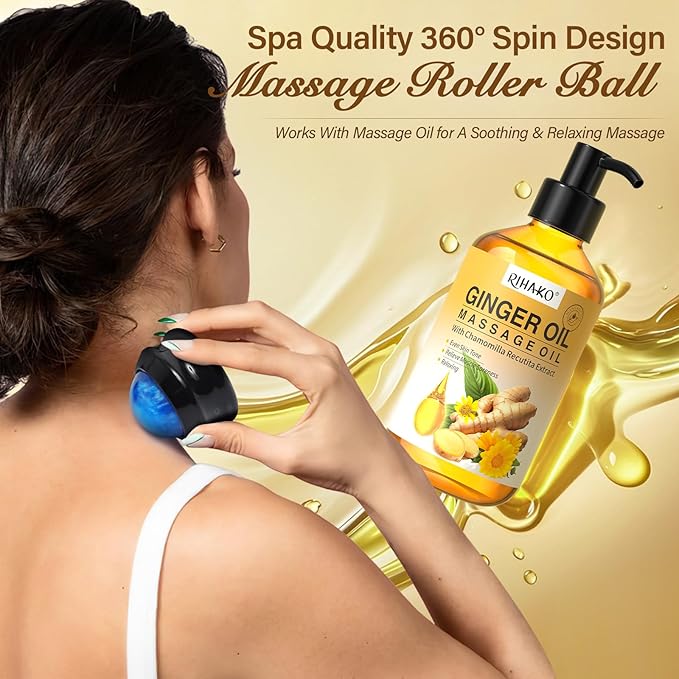 - 🎁【Great Choice For At-Home Spa】 No more expensive trips to the salon for massages. The RIHAKO Massage Oil Trio Bundle will make you feel like you're at a spa while staying in the comfort of your own home! The unique 360-degree rotating design glides over your skin and smoothes out any knots or tension. Just add a few drops of massage oil and you're ready for a soothing, relaxing massage.