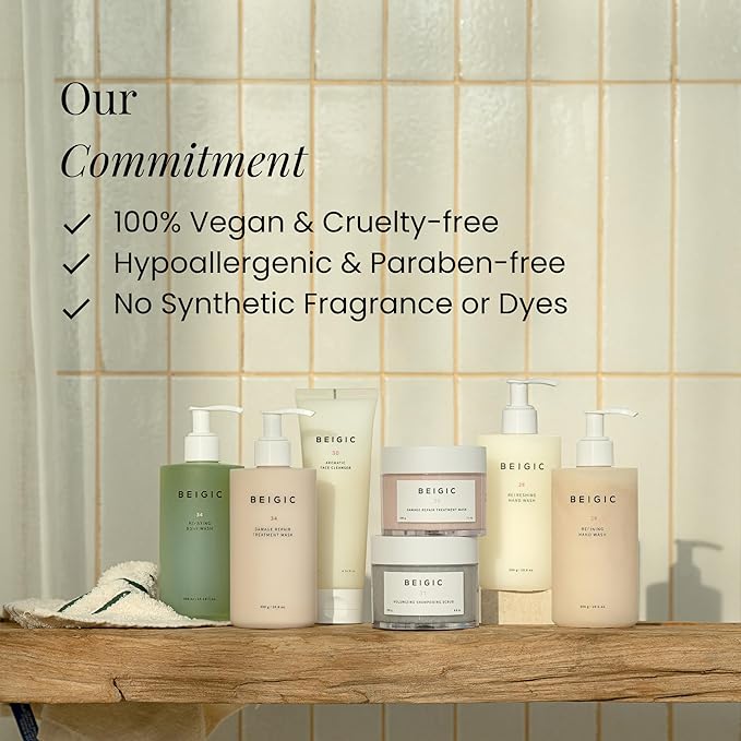 - BEIGIC products are vegan, cruelty-free and devoid of synthetic fragrances, artificial colors, harsh sulfates, parabens, and mineral oils.