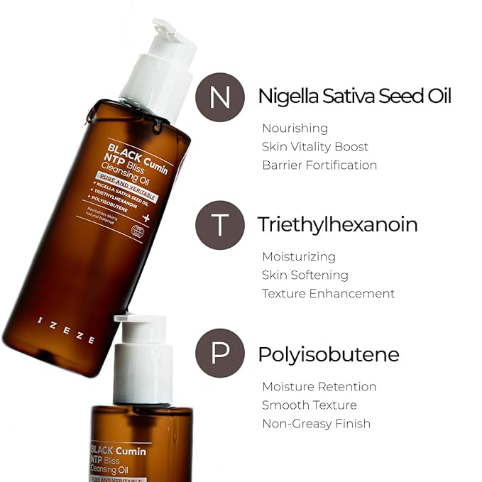 IZEZE Black Cumin NTP Bliss Cleansing Oil 6.76 fl.oz, 200ml | Waterproof Makeup Remover, Blackheads and Sebum Care, Deep Cleansing, Thymoquinone, Nigella Sativa Seed Oil For Skin Health