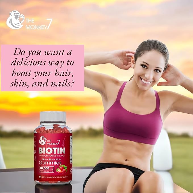 - Hair Skin and Nails Gummies: Boost Hair, Skin & Nail Health with 10,000 mcg Biotin per Serving Take your beauty regimen to the next level with our high-potency biotin gummies. Formulated with 10,000 mcg of biotin per serving, these delicious strawberry flavour support healthy hair growth, strengthen nails, and maintain youthful-looking skin. Our biotin gummies are the perfect addition to your daily routine, providing essential nutrients to help you look and feel your best.