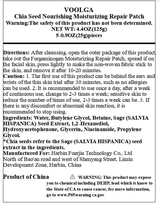 Voolga Hydrating Sheet Face Masks with Hyaluronic Acid,Reduce Fine Lines and Wrinkles, Facial Skin Care Repair 敷尔佳奇亚籽滋养保湿修护贴 25g/5 Pieces/Box