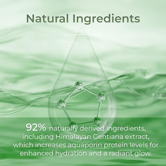- Natural Ingredients Formula: 92% naturally derived ingredients, including Himalayan Dragon Gall extract, which increases aquaporin protein levels for enhanced hydration and a radiant glow.