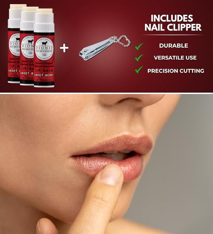 - PERFECT BUNDLE SET - This set includes 3x Goat Milk Sweet Berry Scent Lip Balm bundle with 1x Nail Clipper, providing a convenient and complete self-care routine. (Packaging May Vary)