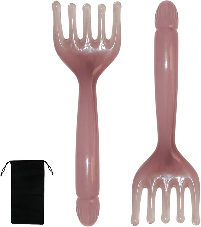 - 【Comfortable and Esay Use】The gua sha massger is designed in a five-claw shape that Imitate the human hand. Can be used with both hands for total relaxation, you can use it easily to slowly massage your scalp and the whole body or use the the head of handle press the pain points, whether you're at work, in a meeting, watching TV, playing games, chatting or at anytime and anywhere.