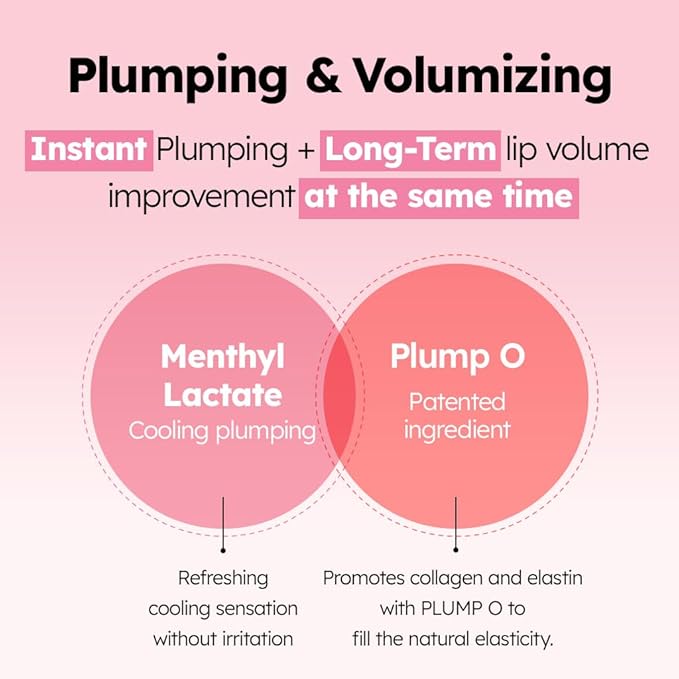 - đź’„Cooling sensation - Menthyl Lactate, which provides a refreshing cooling sensation, promotes blood circulation in the lips. Resulting in a fuller volume without irritation.