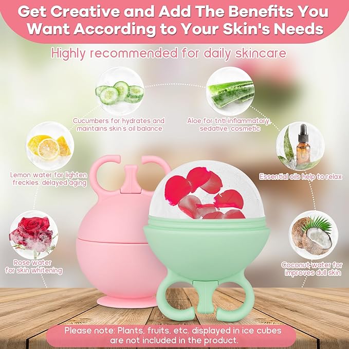 - HIGH QUALITY & MONEY SAVING: Ice roller for face made of high-quality silicone material, Reusable, durable, BPA free, face massager tool is made of food grade silicone. Pack of 2 for alternate use, which can save you money. DIY beauty recipes according to skin needs, lemon water whitening, green tea anti-inflammatory, cucumber water reduces swelling, mint leaves refreshing, coconut juice improves skin, have a spa experience at home. ice face roller ice globes for face ice for face ice facial