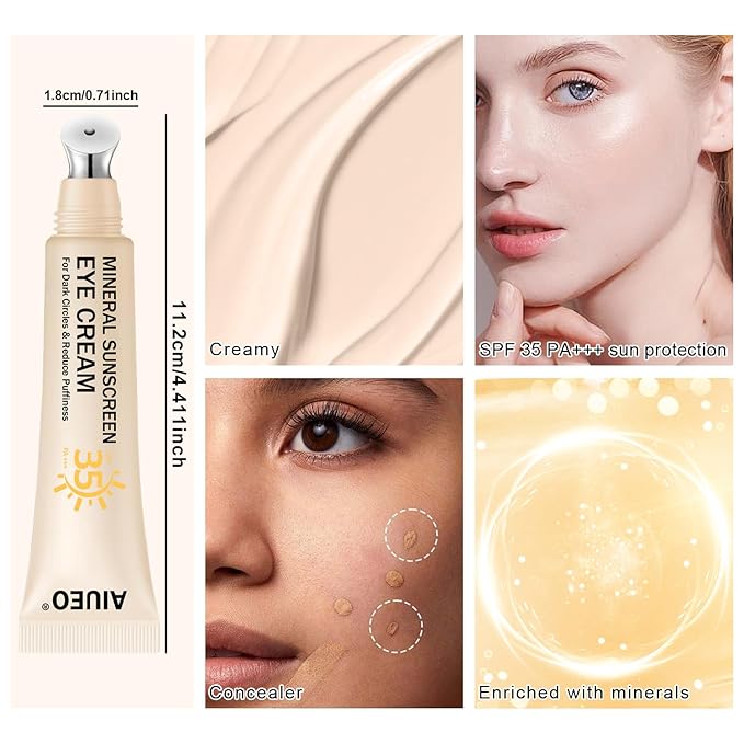 Scarman Mineral Eye Cream, 3-in-1 Anti-Aging Eye Cream, SPF 35, Wrinkle Care, Filter Phone Skin-Damaging Blue Light for Dark Circle and Fine Lines, 15ML(#02 Medium)