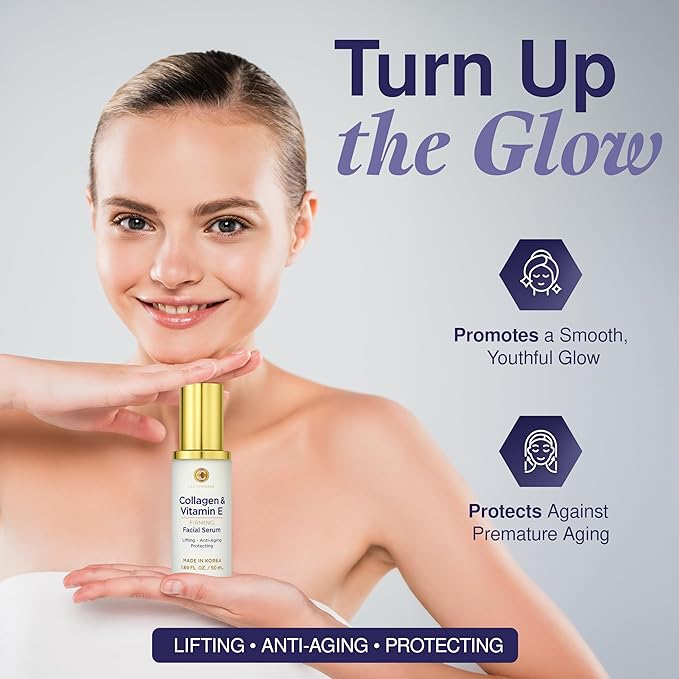 Collagen & Vitamin E Serum - Dermatologist Tested, Anti-Aging, Hydrates, Reduces Wrinkles, Clean Beauty, Cruelty-Free Korean Skin Care for All Skin Types - 1.69 fl. oz