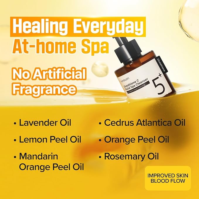 numbuzin No.5 Cleansing Oil | Glutathione C Facial Spa Cleanser | Oil Cleanser for Face | Glutathione, Vitamin C, Niacinamide | Aromatherapy, Uneven Skin Tone | 6.76 fl. oz.