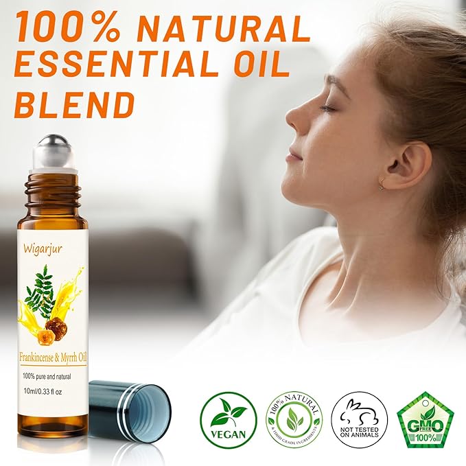 3 PCS Frankincense Essential Oil Blend Oils Roll On, Patchouli, Myrrh, Rosemary Essential Oils, Vitamin C Roller for HIPS, Hands, Shoulders and Legs Skin Care Soothing