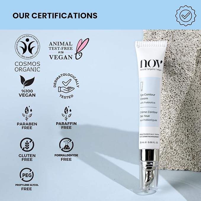 Natural Organic Vegan Eye Cream | Eye Cream for Dark Circles and Puffiness Cream for Eye Bags and Dark Circles Under Eye Contour Cream with Prebiotics 0,68 Oz Dermatologically Tested