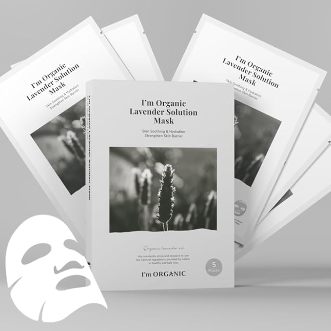 I'm ORGANIC - Lavender Solution Mask with Organic Lavender Oil | Skin Soothing | Hydrating | All Skin Types | 5 Masks