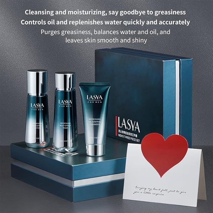 Oil Control Skin Care Set For Men 3-In-1 Skin Care Routine With Cleanser Toner Lotion 3 Step Skin Care Routine