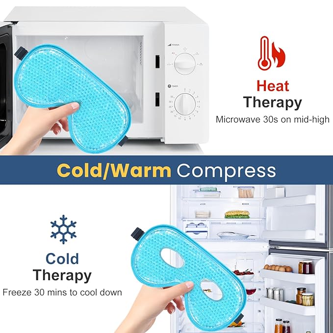 - 【Hot & Cold Therapy, Super Quick & Easy to Prepare】For cold use, just put ice frozen gel mask for puffy eyes into the reusable storage bag & freeze 30 mins to cool down. BeeVines 2 pack cooling eye masks for puffiness are ideal to be used for cold compress in the morning after wakeup. For dry eyes, you can also use it for warm compress: just microwave on Medium-high/High power for around 20s & add 5s each time & check if gel eye mask is warm enough for warm eye relief. Don't heat for over 1 min!
