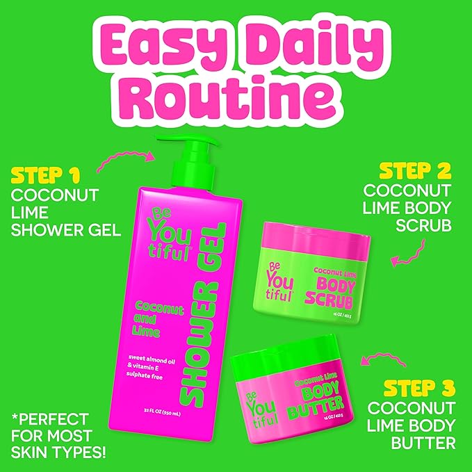 - Uplifting Coconut Lime Scent: Indulge in a light, tropical fragrance that brings a touch of summer all year round. The refreshing scent of coconut and lime is naturally energizing, leaving your skin with a hint of sunshine and a fresh, invigorating feel.