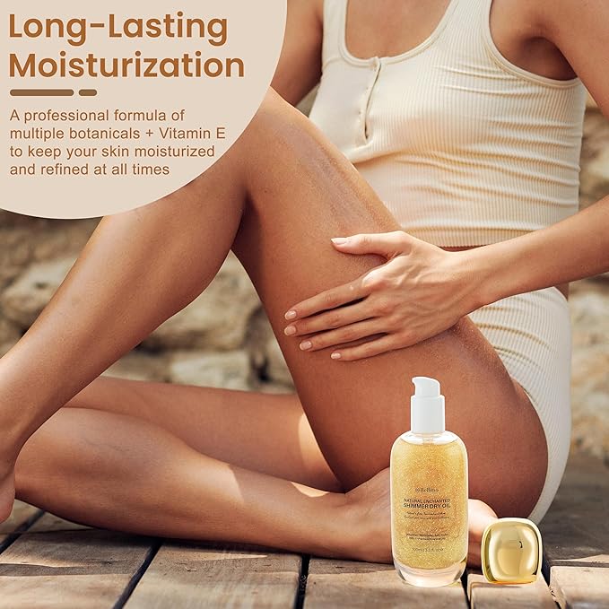 - Moisturizing and Hydrating: Formulated with multiple plant extracts and Vitamin E, this shimmering body oil keeps your skin soft, smooth, and hydrated, giving you a vibrant and radiant appearance.