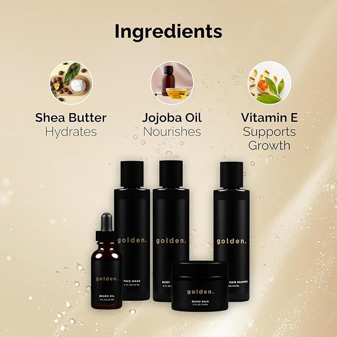 Golden Grooming Co. Everyday Grooming Bundle for Textured Hair & Melanin-Rich Skin | Essential Beard & Skincare Kit with Beard Shampoo, Face Wash, Beard Oil, Body Wash & Beard Balm