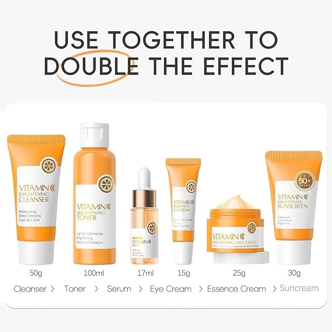 - Skin Care Sets & Kits: This vitamin C skincare set is a must-have beauty skincare gift set for all ages. It can effectively improve dull and dry skin, reduce wrinkles, tighten the skin, shrink pores, and keep the skin moist, plump, and radiant for a long time