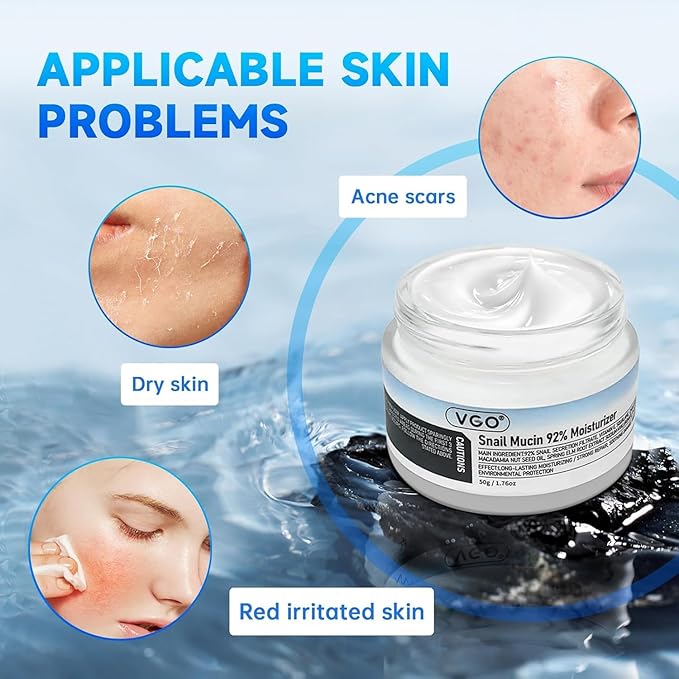 VGO Skin Care Set, with Snail Mucin 92% Moisturizer 1.76 Oz & Vitamin C Serum 2.02 Oz, Hydrating Skincare Set for Women and Men