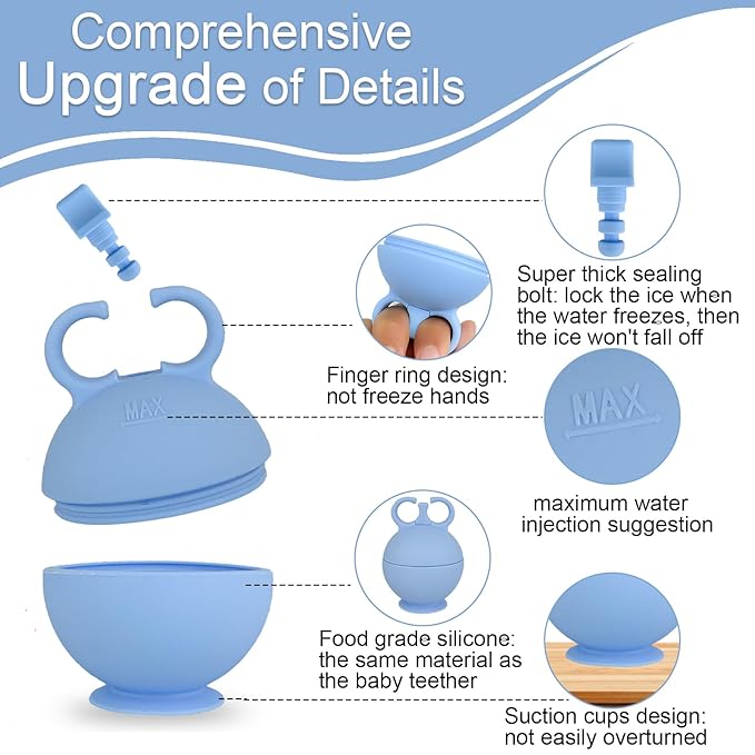 - Unique Finger Ring and Suction Cup Design: Different from the traditional ice roller, our ice face mold has a unique design. Hand ring design: protects your fingers from frostbite while in use, which is more ergonomic. The bottom suction cup design: the facial ice roller is placed more smoothly, which can prevent the face ice roller from being accidentally touched and tipping over causing water leakage.