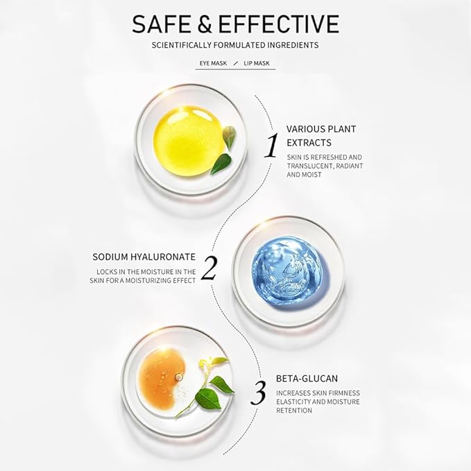 - The set includes 15 Pcs lip masks and 15 Pairs eye masks, Extremely gentle and nourishing, hydrating, firming and lifting the skin.