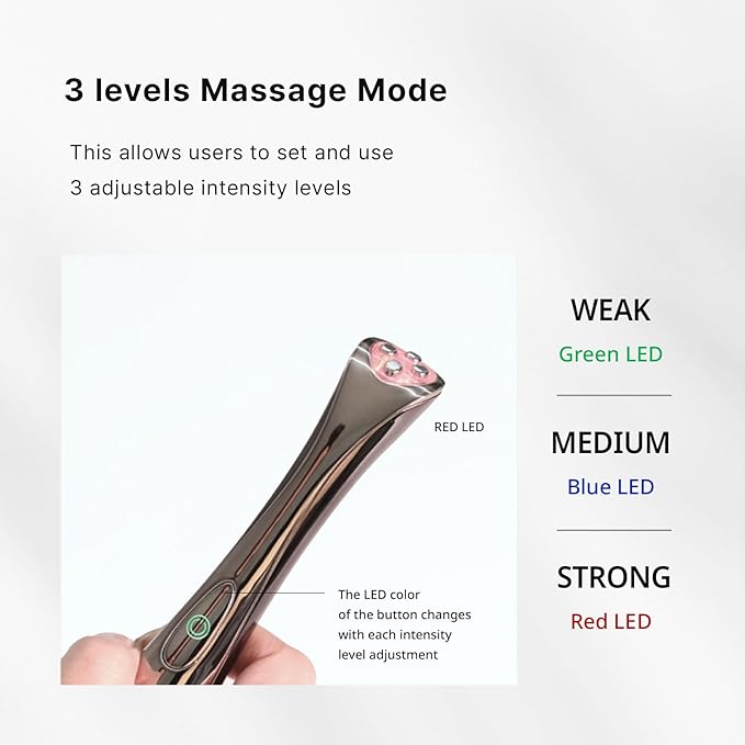 - All-in-one beauty device with 3 levels : This at-home beauty device is designed for daily self-care with three adjustable levels to suit different skincare preferences. It features a gentle warming function that may help provide a soothing experience. With its lightweight, handheld design and small head, this device may assist in precise skincare application, making it easier to care for areas like the eye area and other detailed spots. It serves as a skincare tool to help support your beauty routine.