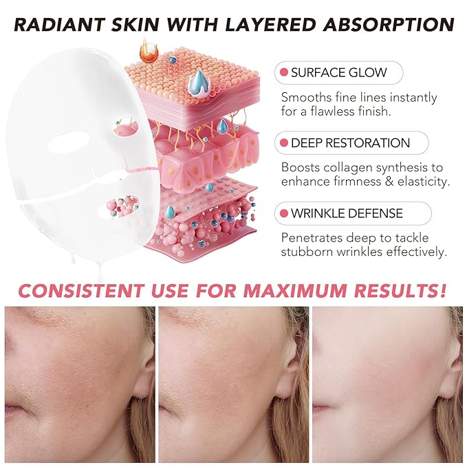 Collagen Face Mask, Hydrating Overnight Hydrogel Mask, Elasticity Improvement, Firming, Moisturizing-8 Pack