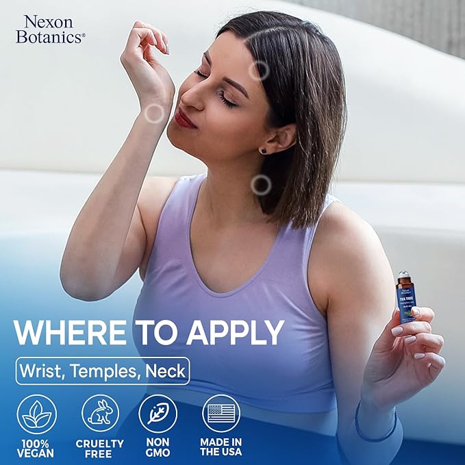 Tea Tree Oil Roll-On 10 ml - 100% Pure, Natural Essential Oil for Aromatherapy, Skin, Face & Body - Pre-Diluted for Travel - Nexon Botanics