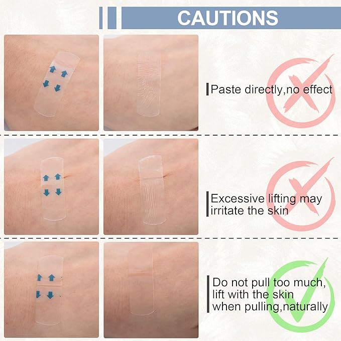 - Easy to Use: First, make sure that there is no makeup or oil on your skin. Then, stick one end of the face life tape on your skin, then pull it back 1-2 inches and press for a few seconds. Finally peel off the protector and your wrinkles will be lifted well