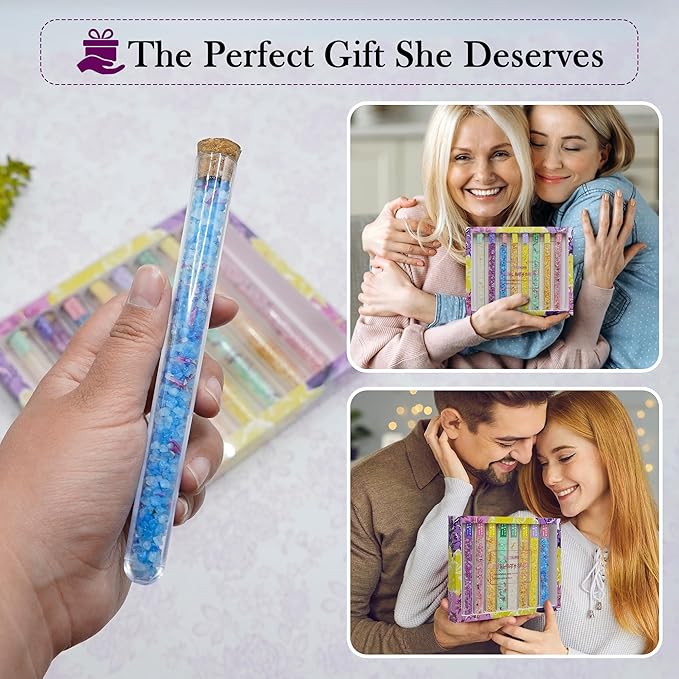 - SET INCLUDES – This set comes with 8 tubes of bath salts that are all 1 oz. The bath salts are packaged in a beautiful present box.