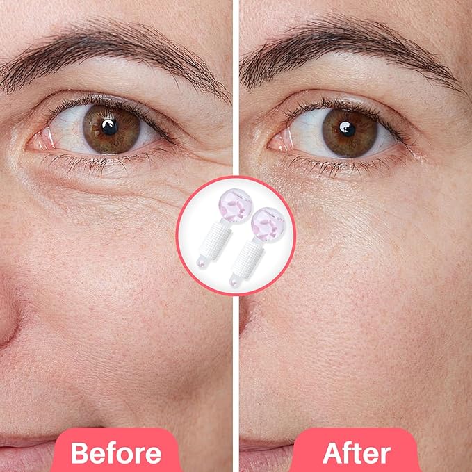 - Soothe & Refresh Skin - Perfect for morning routines to reduce sleep puffiness, or evening use to calm irritated skin after sun exposure. The cooling effect helps shrink pores and improve product absorption./Dual-Purpose Ice Therapy - Our set includes 2 ice globes, providing complete facial massage solutions. The ice globes reduce puffiness while the roller targets fine lines and wrinkles.