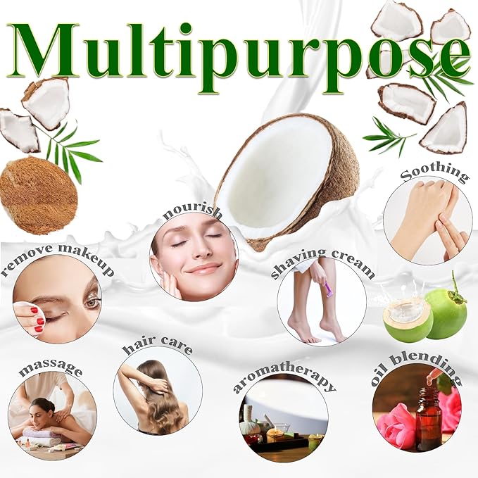 - 100% Natural Fractionated Coconut Oil: a versatile base oil that remains liquid at all temperatures and is easy to mix with other oils. Suitable for aromatherapy, essential oil blending, massage, and can also be used as a moisturizer for hair and skin. Pure coconut oil does not contain hexane, nipagin esters, or sulfates, and is 100% natural.