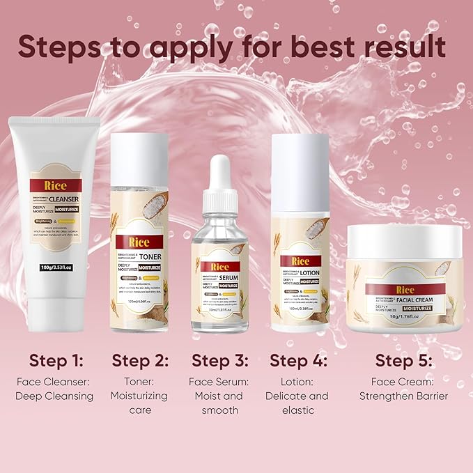 - NOURISHING SKIN: with rice fermentation extracts delivers essential nutrients that work synergistically to penetrate deeply into the skin, enhancing moisture retention. The facial kit designed specifically to deeply moisturize, delay skin oxidation, and keep your skin glowing beautifully.