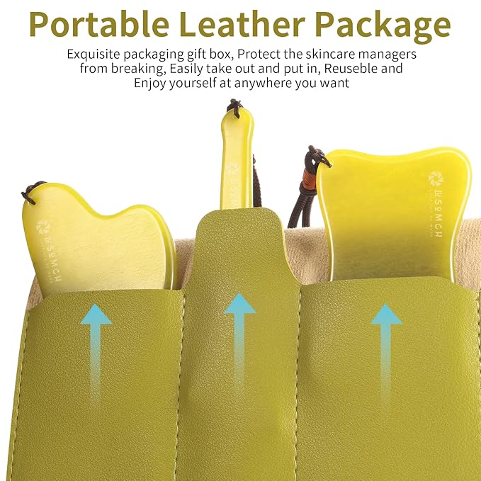 - [Perfect green gifts for Women] Beautifully packaged in an elegant PU bag, this gua sha set makes a thoughtful beauty gift for woman, mom,sister, girlfriend or any skincare enthusiast. Experience the ancient beauty ritual that's now a modern skincare essentials.