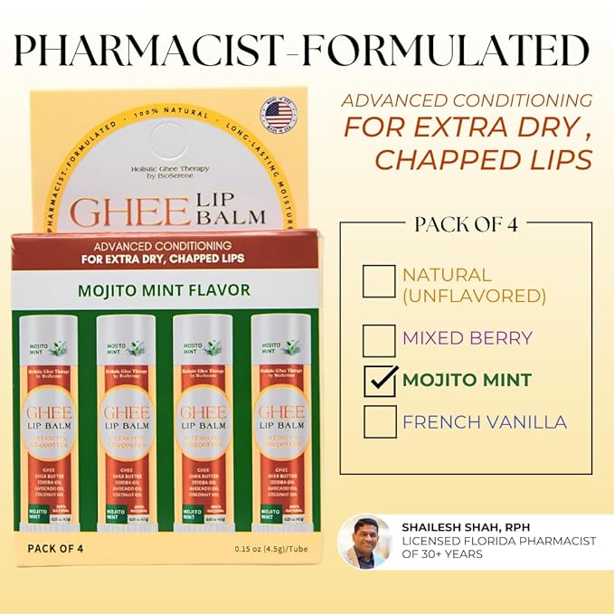 - Intense Hydration: Our natural lip balm, enriched with Ghee and Shea Butter , provides intense hydration for longer period, making it the best lip balm for very dry lips.