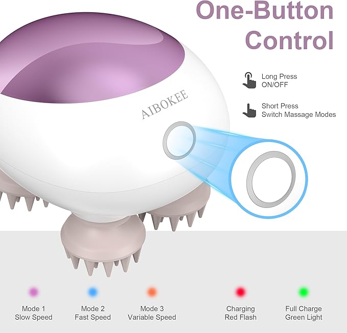 - 【Three Speed Modes 】 Smart Scalp Massager has three modes (low/high/alternative) to choose from for different intensity needs, from gentle to deep kneading massage. You can switch between 6 working modes to get the best scalp massage experience.