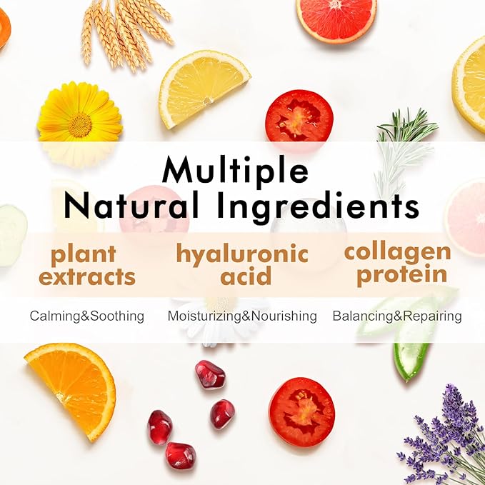 - 【60 Pack Face Masks Skincare】There are 60 sheet facial masks of 12 different types,5 of each type,lemon,aloe,grapefruit,chamomile,tomato,lavender,tea tree,pomegranate,honey,hyaluronic acid,shea butter and oats.You often use these collagen rich facial mask,they will help you improve your skin condition,making skin firmer,moister,more elastic and more smoother