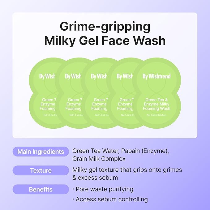 - GREAN TEA & ENZYME MIKLY FOMAING WASH: Infused with Green Tea Powder known for its cleansing and soothing properties, ensuring a refreshing experience. The gentle green tea granules provide mild exfoliation, transforming into a hydrating foam.