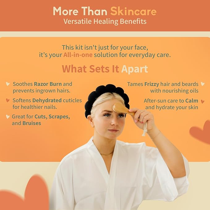 - TACKLE DRYNESS & DAMAGE: This all-in-one skincare set hydrates and revitalizes, softening scars and smoothing dry, damaged skin. Perfect for after-sun care, soothing razor burn, or rejuvenating dehydrated cuticles for a complete facial kit for women experience.